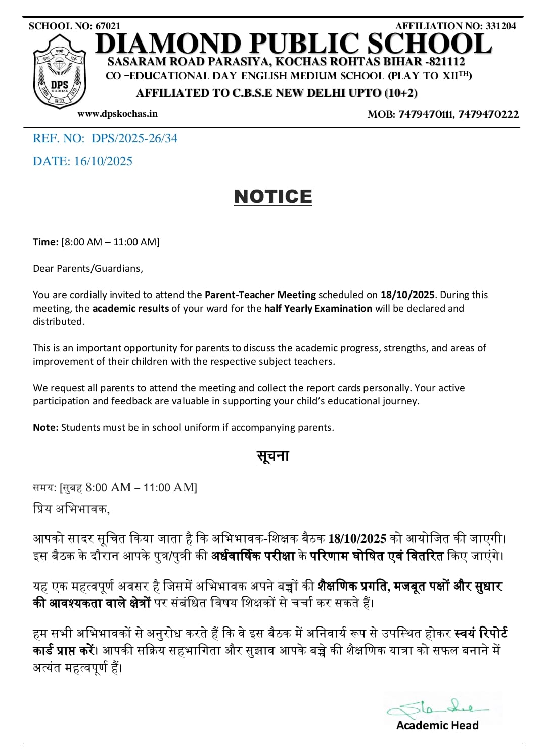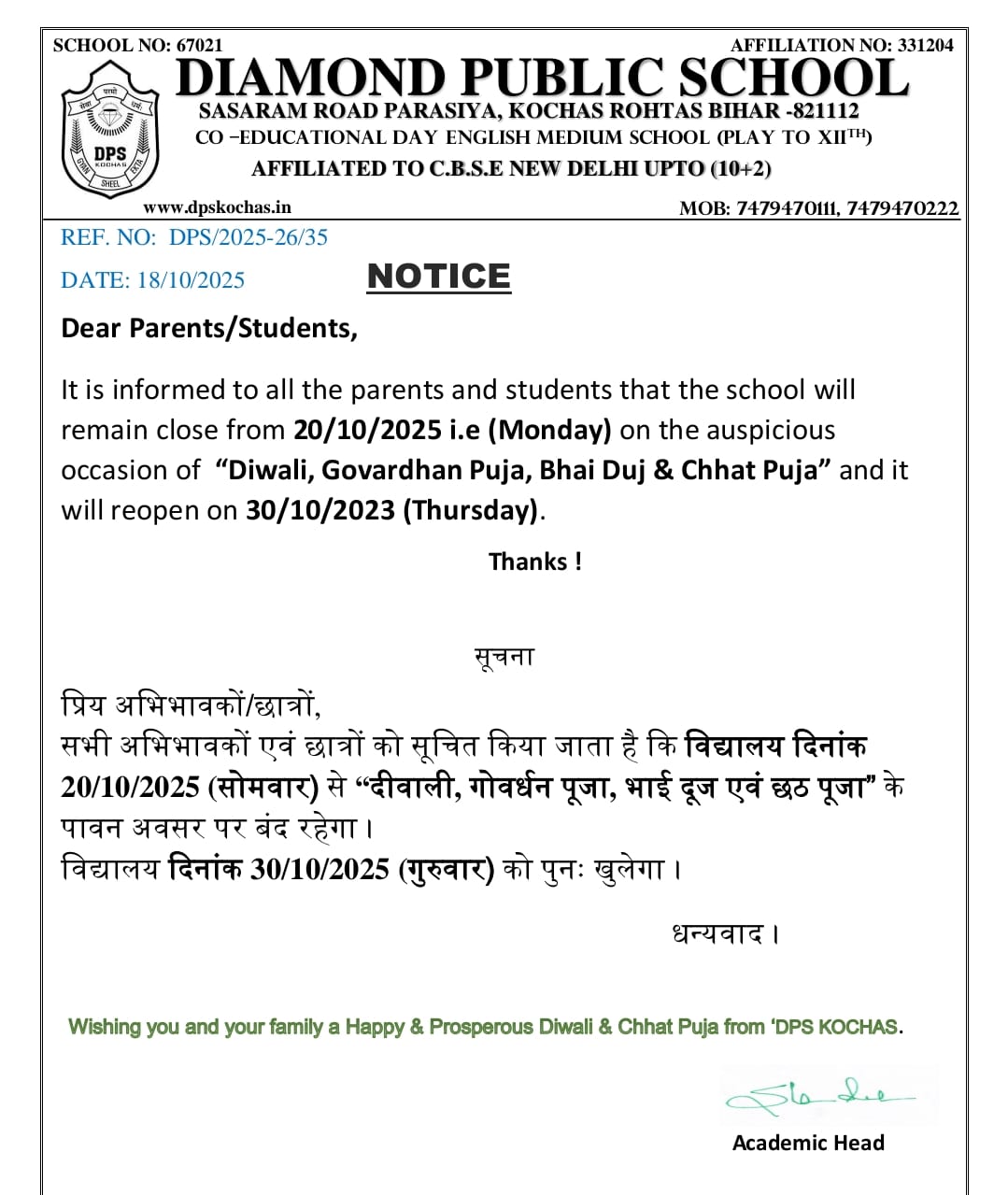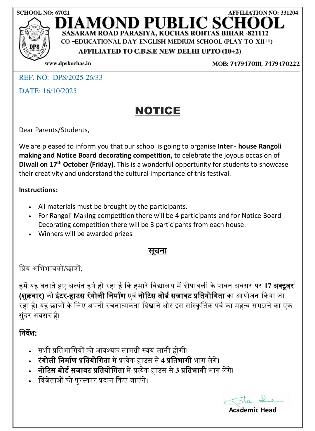 Guided by the timeless wisdom of Indian values and the dynamic spirit of global education, Diamond Public School (DPS), Kochas, stands as a beacon of excellence in Gaya, Bihar. We are committed to nurturing future-ready leaders through a holistic, experiential, and value-driven learning journey.